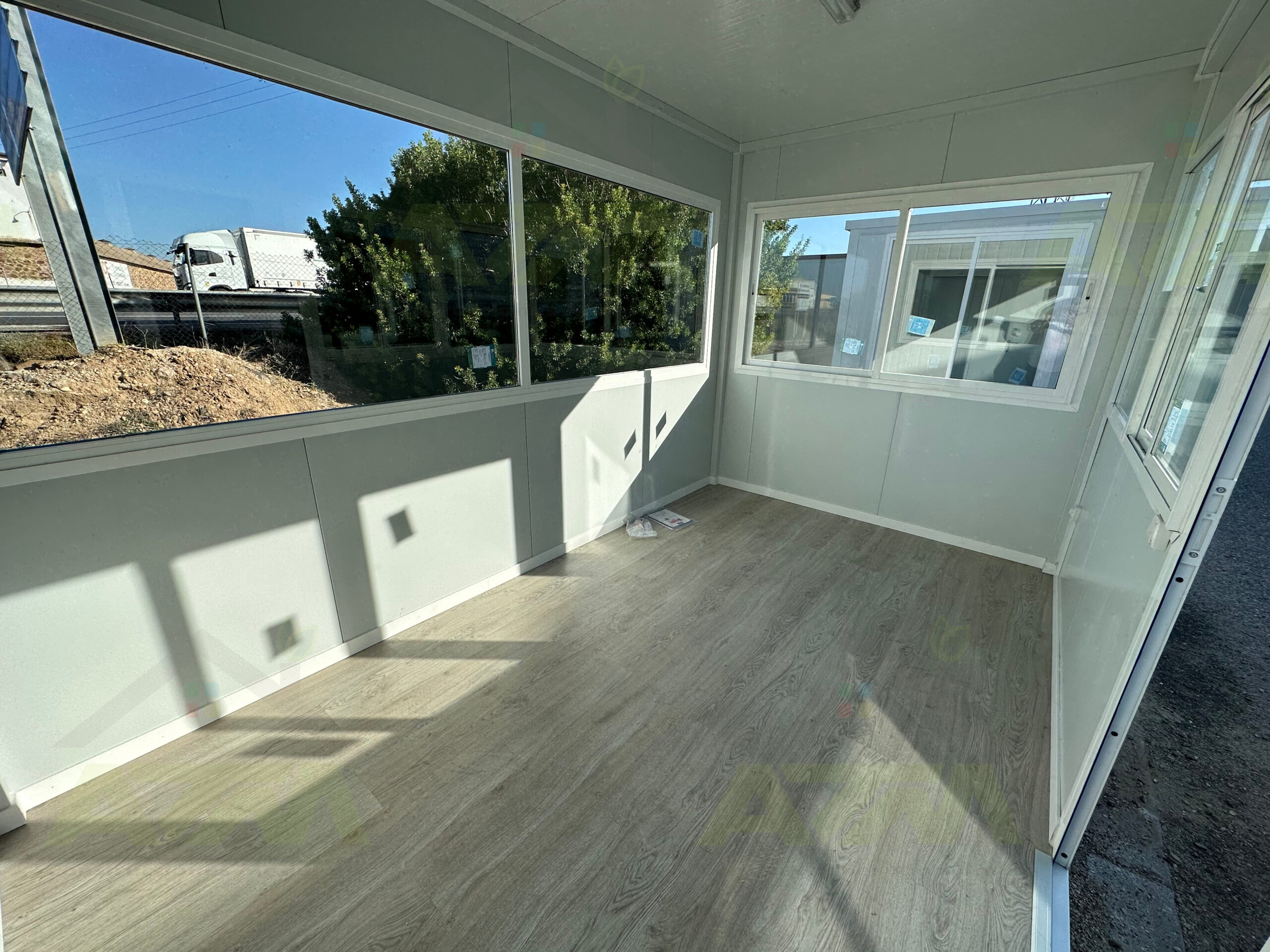 Nuestras casetas de vigilancia son una solución híbrida que combina las ventajas de los módulos individuales con la visión panorámica de los módulos acristalados. Estas casetas suelen tener dimensiones que oscilan entre 2 y 4 metros y están diseñadas con una zona de visión de 360 grados. Son especialmente adecuadas para una variedad de aplicaciones de seguridad, incluyendo garitas de vigilancia, puestos de control y más.