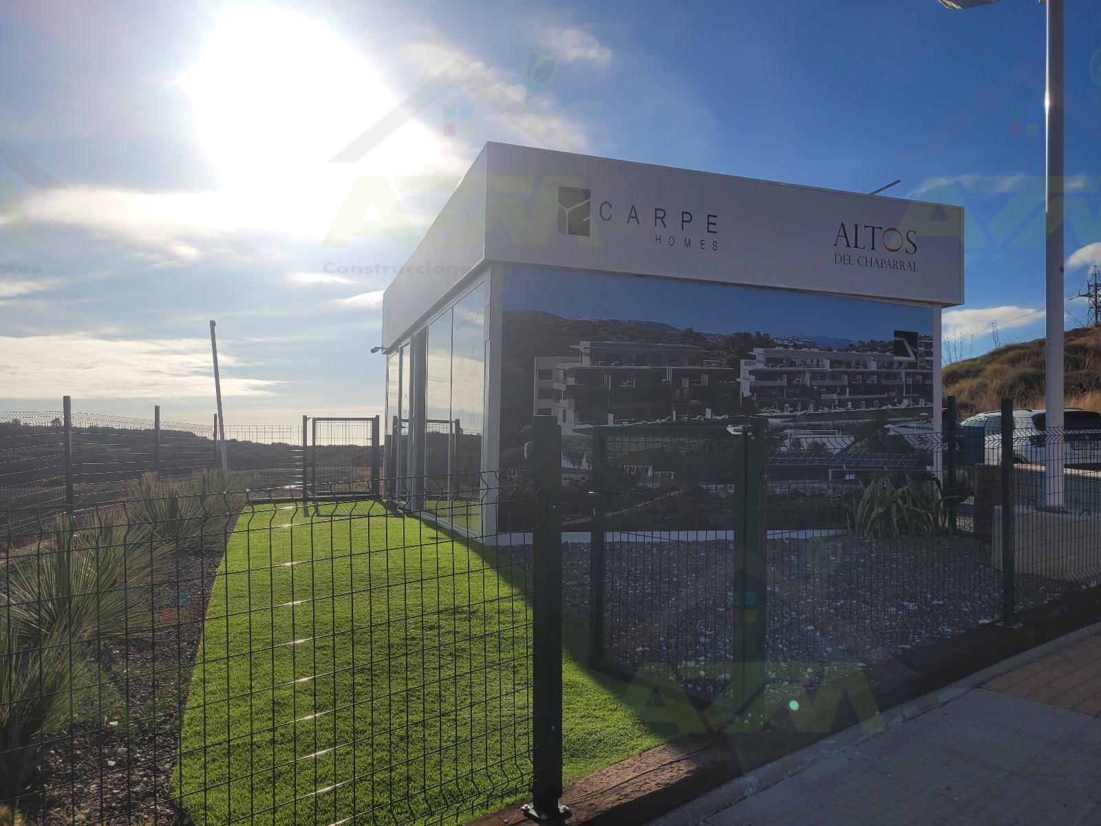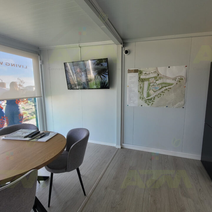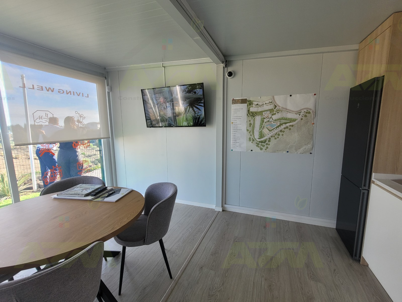 Oficinas prefabricadas de ventas y atención al público: perfectas para promociones inmobiliarias, puntos de venta, recepciones o showrooms. El acristalamiento aporta luz natural, amplitud y una estética profesional que mejora la experiencia del cliente.