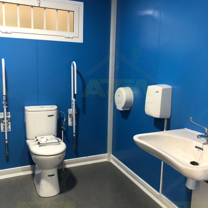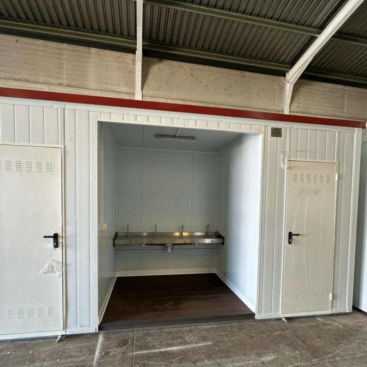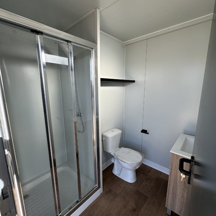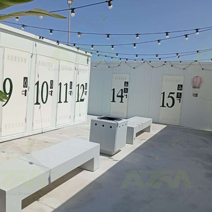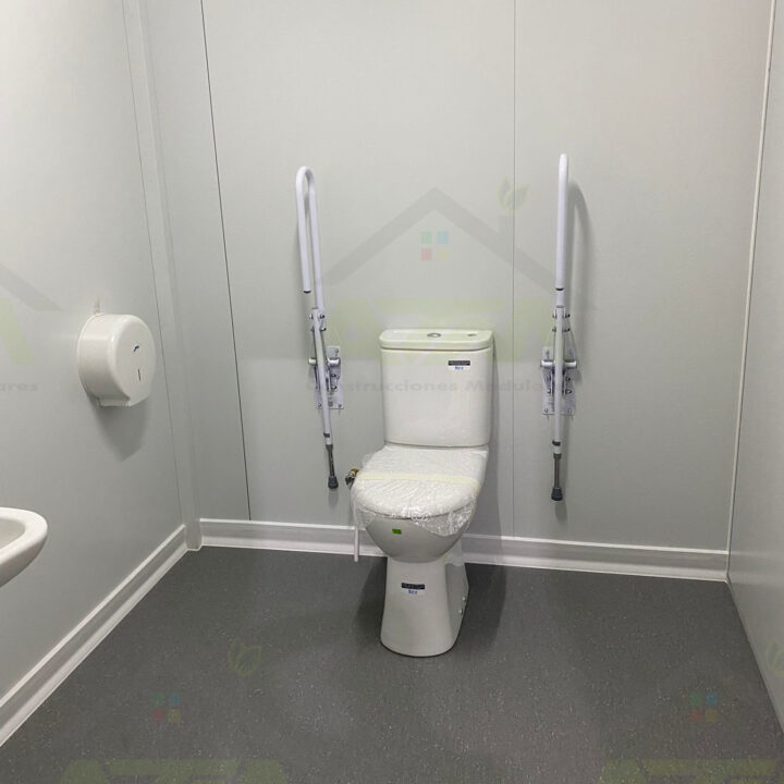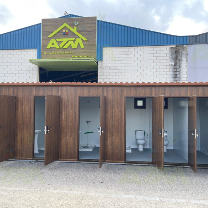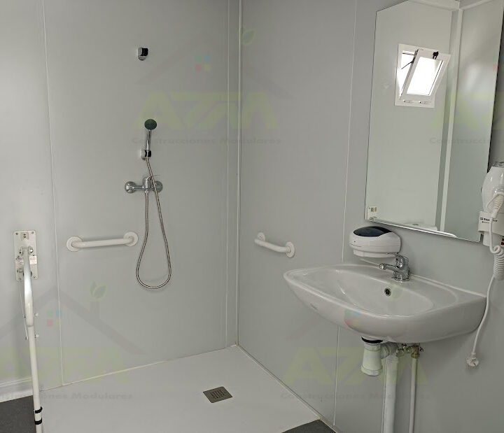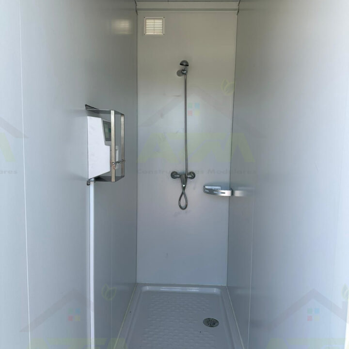 Nuestros módulos sanitarios prefabricados ofrecen una solución rápida y resistente para cubrir necesidades de higiene en entornos profesionales. Son ideales para instalar baños prefabricados, vestuarios modulares con duchas y zonas de aseo, tanto en módulos individuales como en conjuntos de mayor superficie.