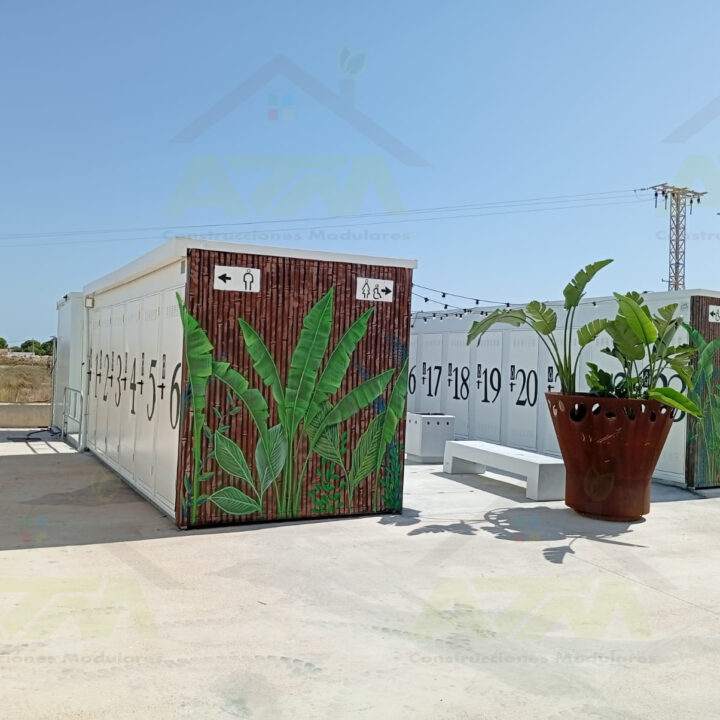 Sí, diseñamos módulos con áreas de vestuario + duchas + aseos, listos para empresas.