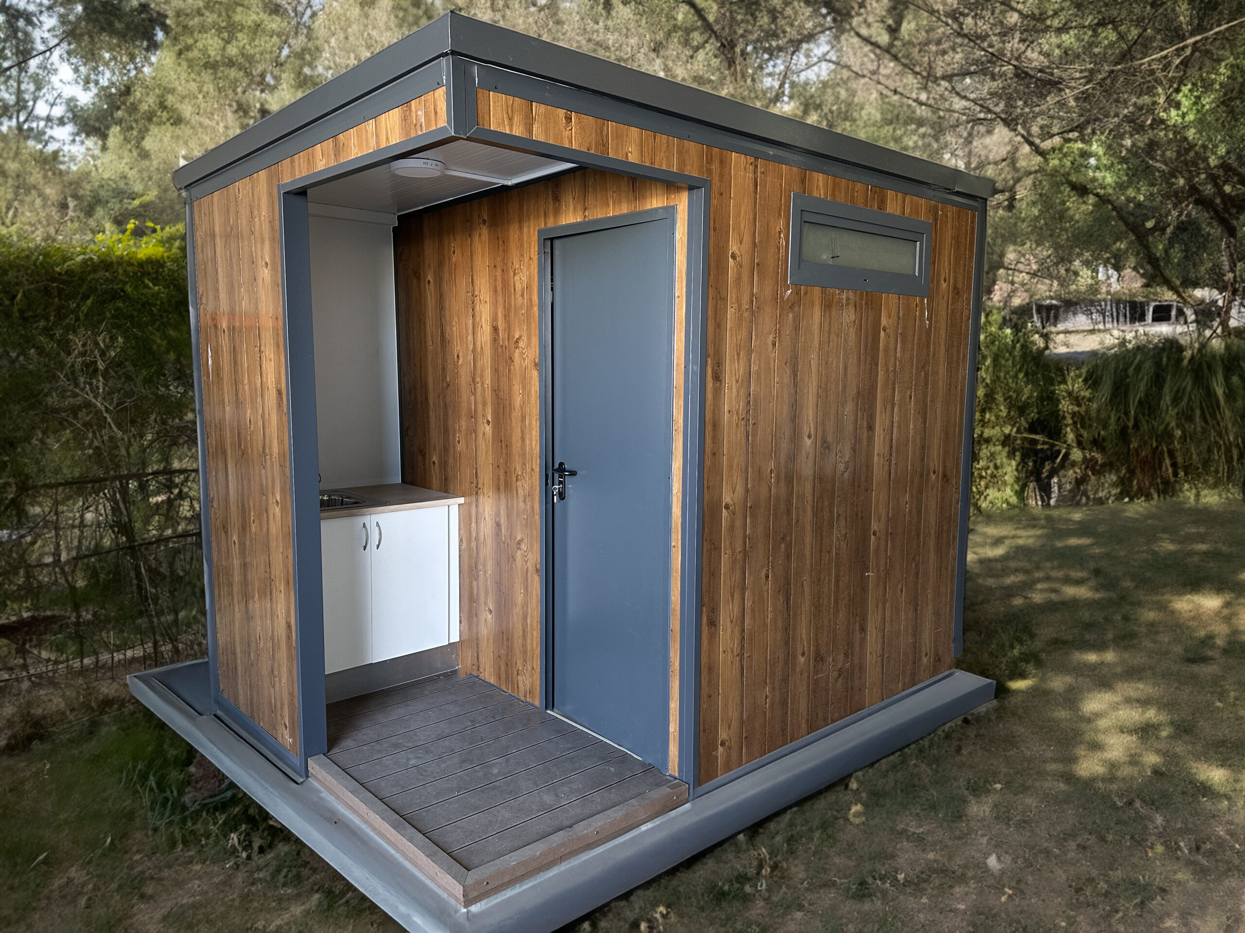 Fabricamos cabinas sanitarias prefabricadas en medidas estándar de 1 × 1 m y 2 × 1 m, pensadas para una instalación sencilla y uso intensivo en sectores como industria, agricultura, ocio y eventos. Cada módulo puede configurarse a medida, ajustando distribución interior, número de cabinas, duchas, lavabos y acabados según tu proyecto.