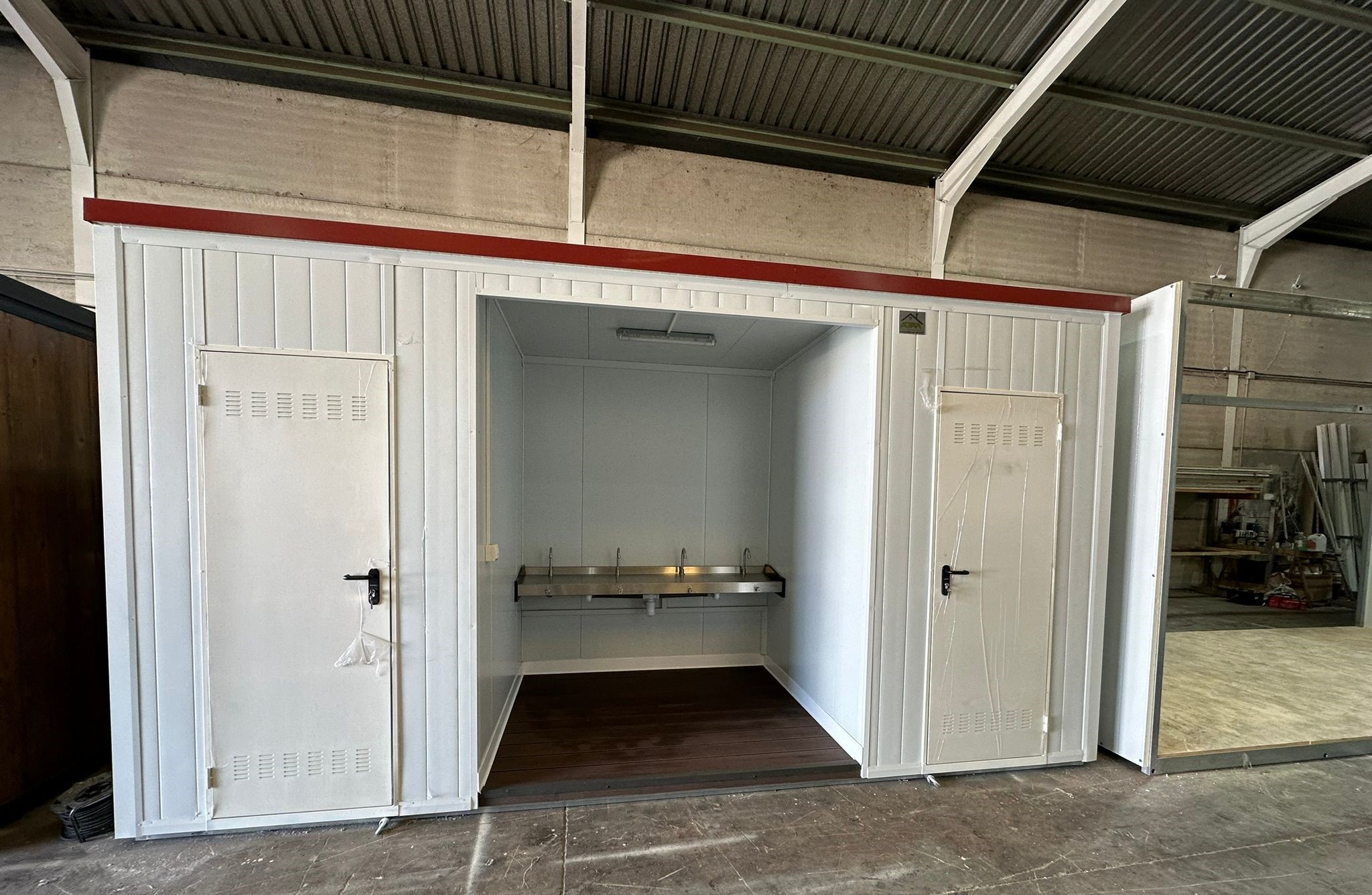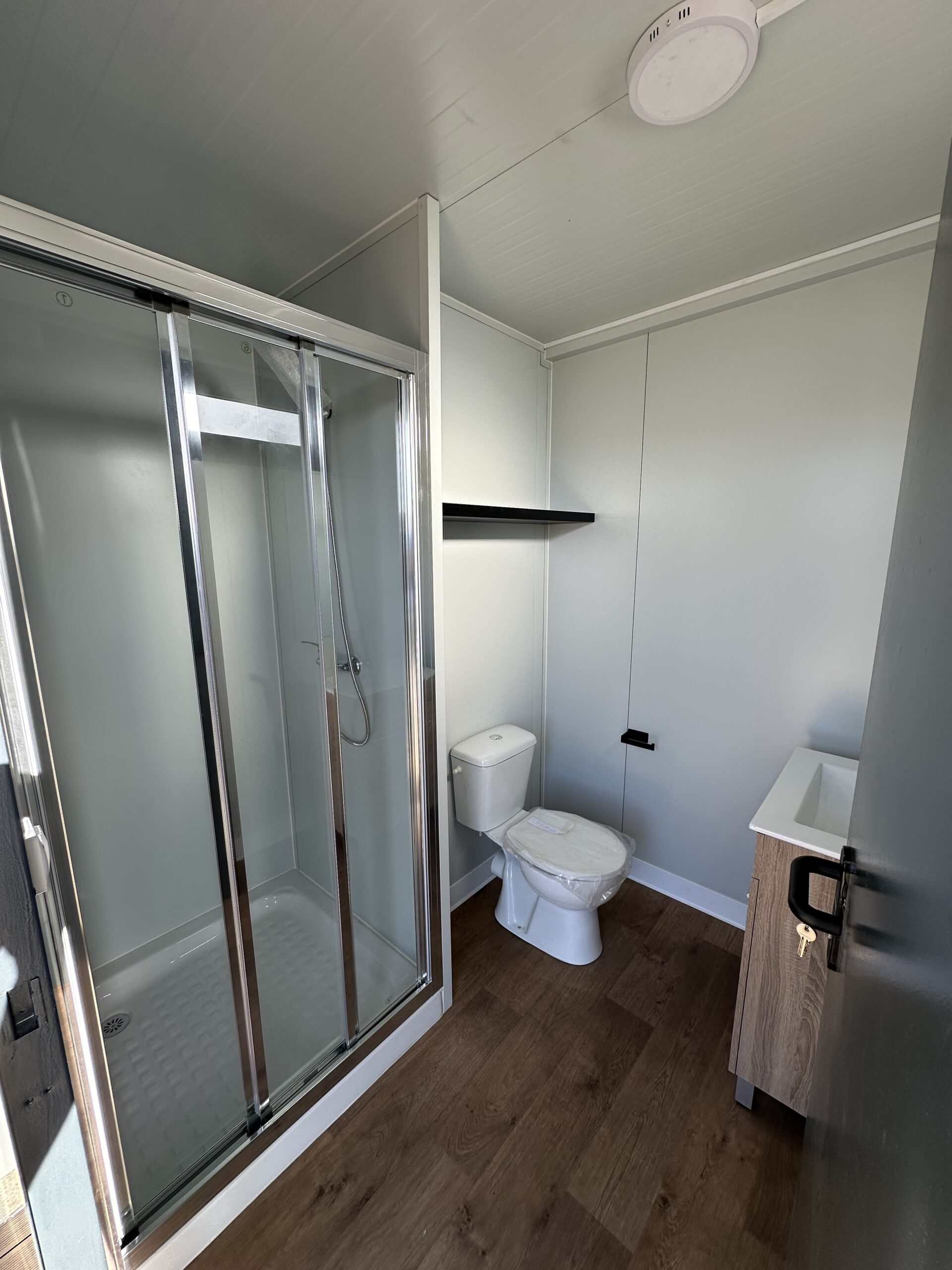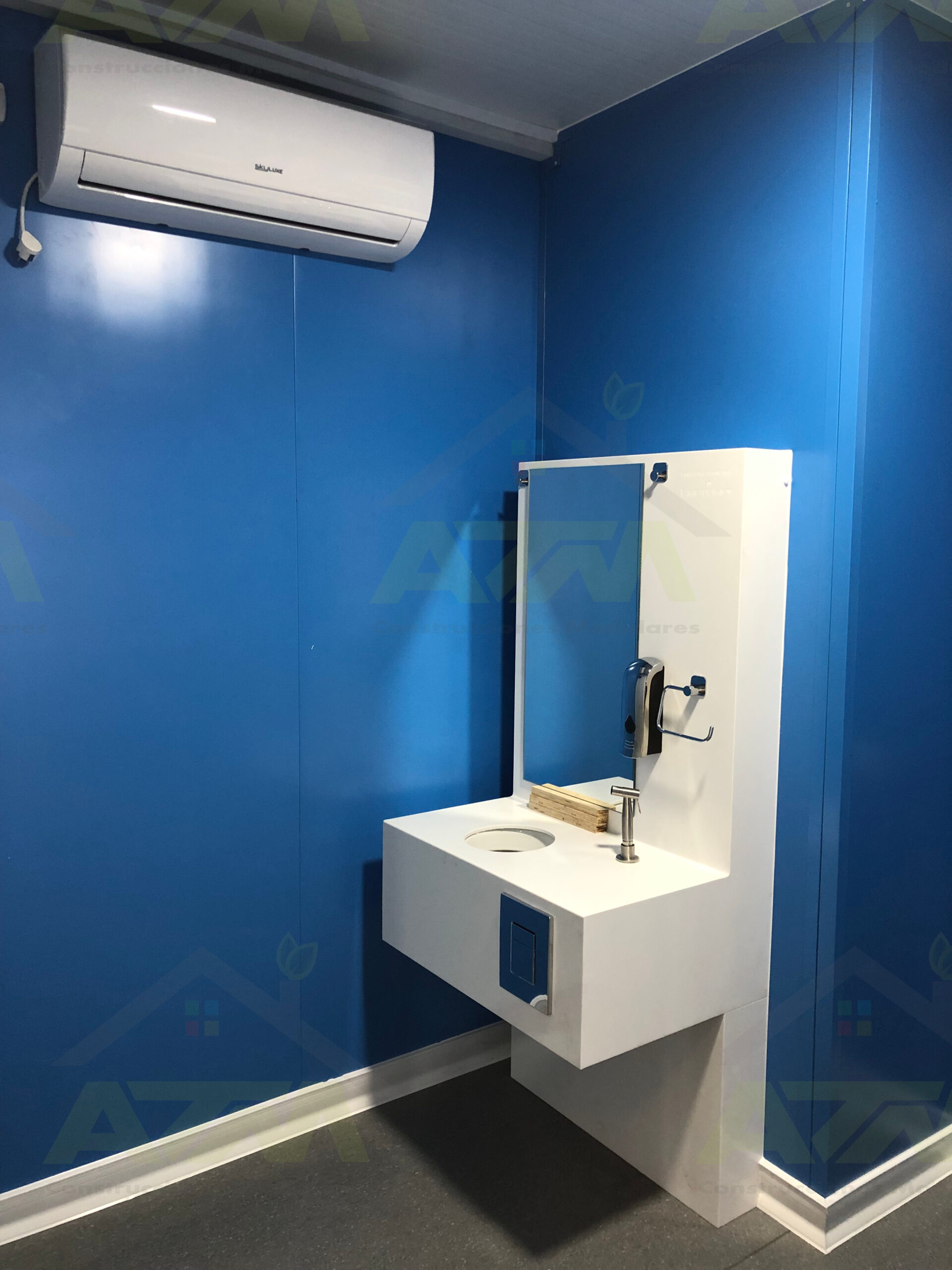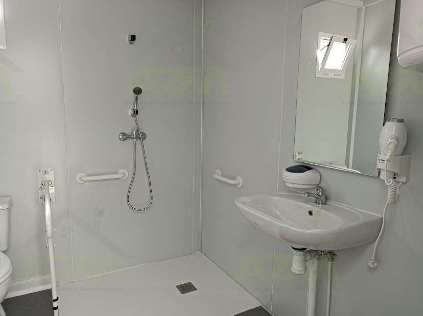 Nuestros módulos sanitarios prefabricados ofrecen una solución rápida y resistente para cubrir necesidades de higiene en entornos profesionales. Son ideales para instalar baños prefabricados, vestuarios modulares con duchas y zonas de aseo, tanto en módulos individuales como en conjuntos de mayor superficie.